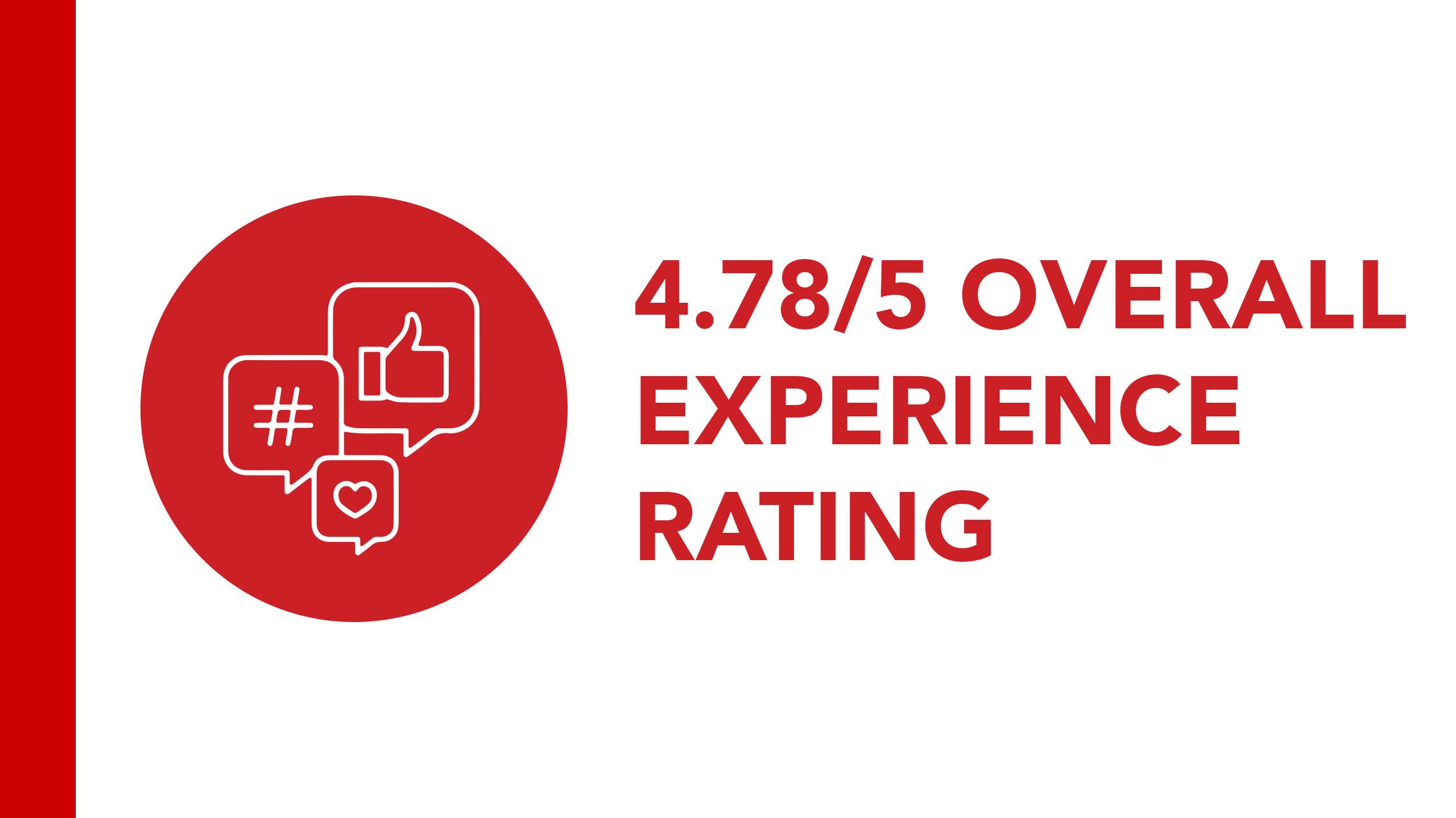 4.78/5 OVERALL EXPERIENCE RATING